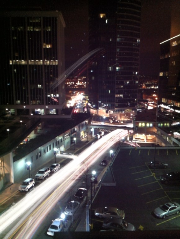 Ever the TiltShift user, I goofed around with a TiltShift Video app I downloaded. Two views (portrait and landscape) from my hotel room one afternoon: