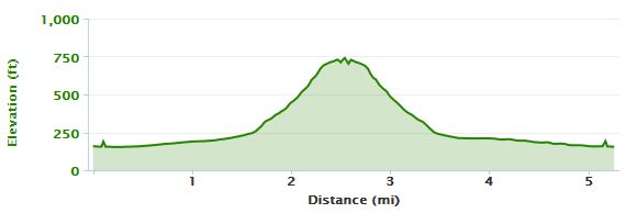 The hill session wasn’t on the schedule; but, with this being a week off work, I thought I’d give it a go. Today’s session was an “easy 5 miler”, so I kept the overall mileage to 5.25 and simply inserted about a 1.5 mile (up & down) hill.