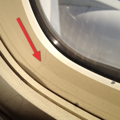 Just how did this hair get in the space between the inside and outside airplane window panels?