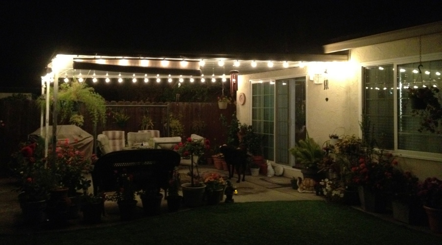 I worked a few projects this weekend, the more visual of which was hanging some new lights on the patio. Nice ambiance!