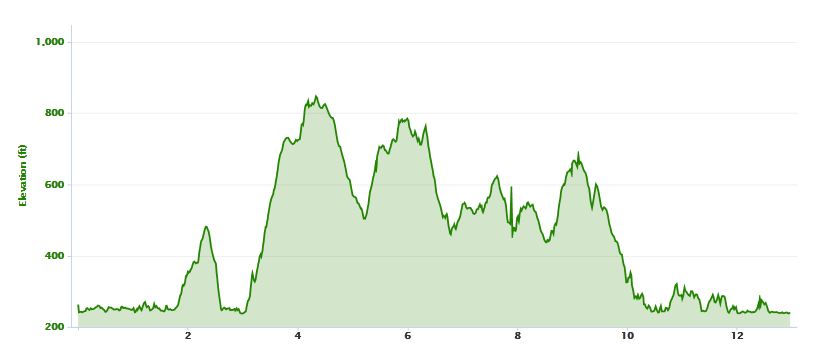 I started in the middle of the pack and moved up slightly after the first mile. I think I stayed in pretty much the same area of the pack with much the same runners most of the race as well. A few of us chatted; but, as with most of races, I ended up by myself most of the time.